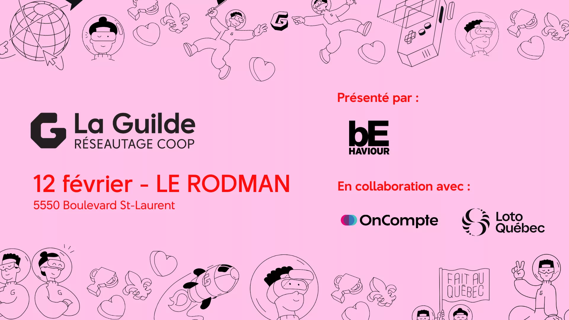 On Thursday, February 12, members of La Guilde are invited to gather for drinks in the festive atmosphere of Le Rodman bar to network, chat, and enjoy a pleasant evening among peers.